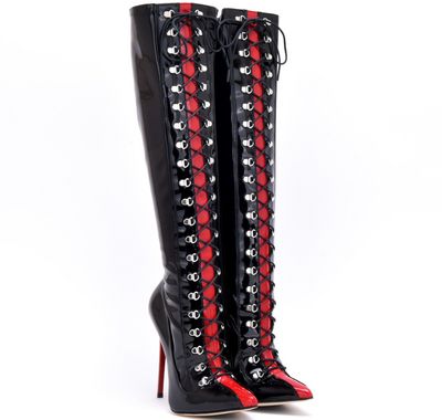 STRAGAZER | SCHWARZ MATT | KNIESTIEFEL MIT SCHNÜRUNG