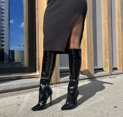 STRAGAZER | ZWART GLANZEND | GEVETTERDE KNIELAARZEN